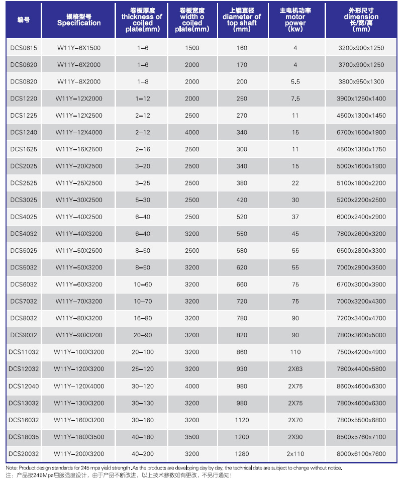 W11Y-液壓對稱式(油缸下置)卷板機(jī)引進(jìn)日本技術(shù)生產(chǎn)。油缸安裝在上輥的上方。上輥在兩下輥中央對稱位置作垂直升降運(yùn)動(dòng)。可以卷制弧形、圓形、錐形等工件。